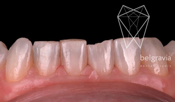 Сделали цифровое сканирование, и техник изготовил рефрактор — недостающий кусочек керамики. Все манипуляции прошли без анестезии, так как зуб не обтачивался.