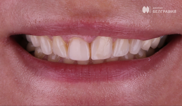 Елена обозначила на приеме свои проблемы — это неудовлетворительная эстетика улыбки и боль в области височно-нижнечелюстного сустава.