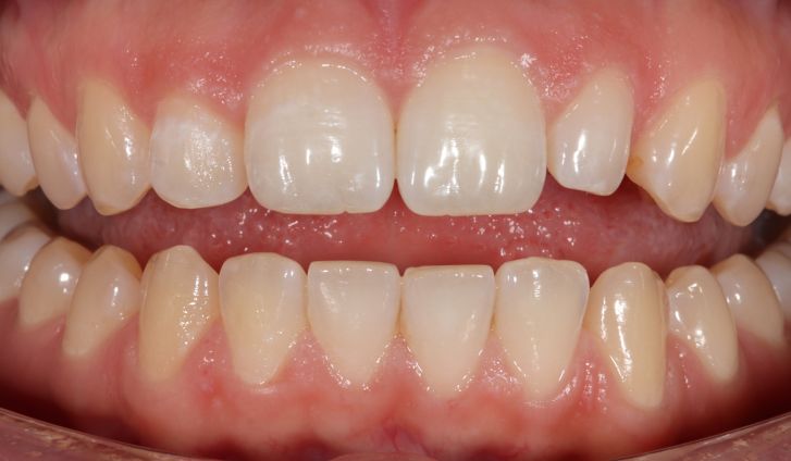 2 этап. Окрашивание зубного налета, обнаружение биопленки. С помощью этого этапа мы можем продемонстрировать проблемные участки на зубах, которые пациент не дочищает дома.